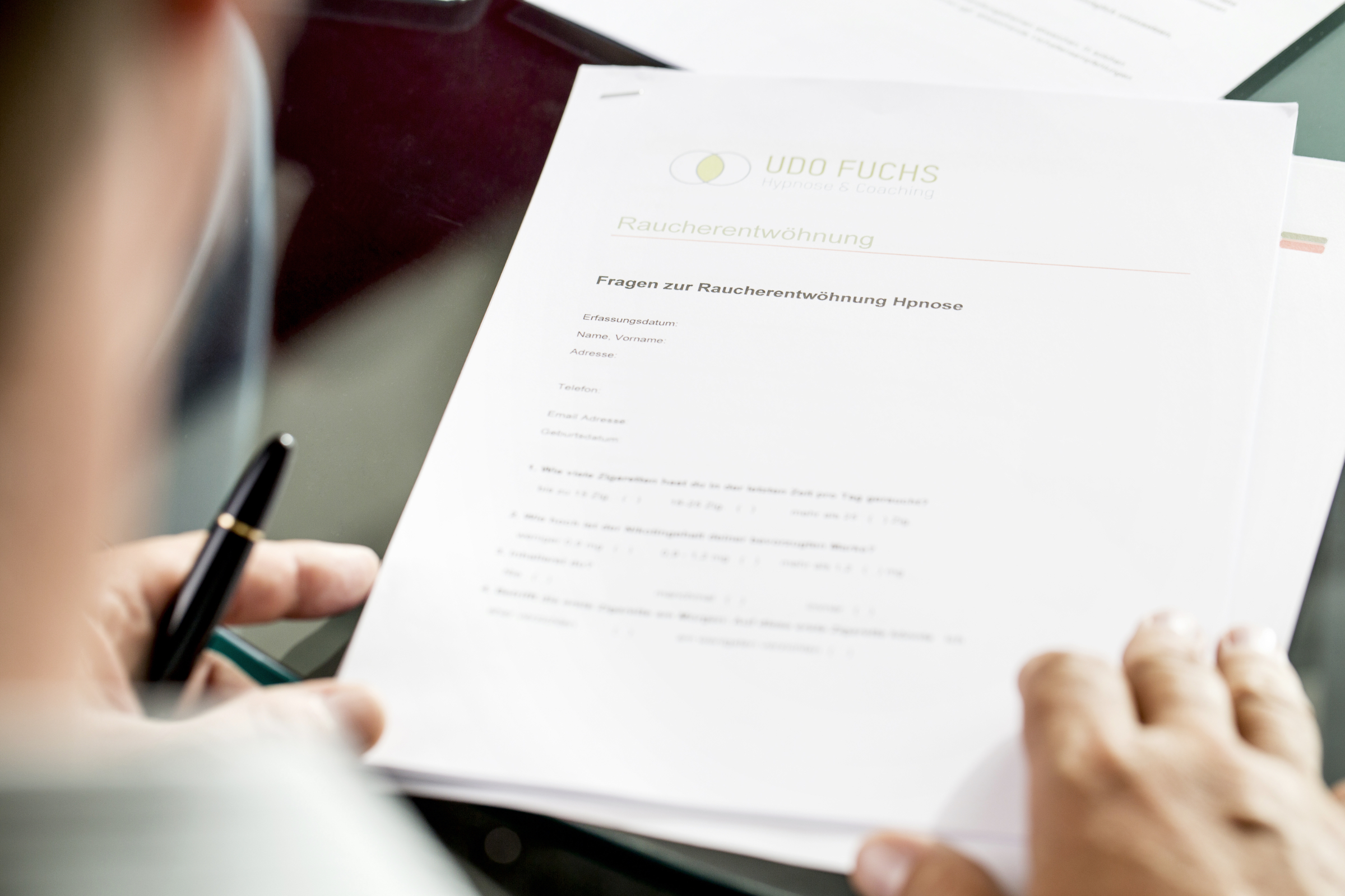 - Pressefoto Vorgespräch zur Raucherentwöhnung – Unterlagen im Studio (JPG)